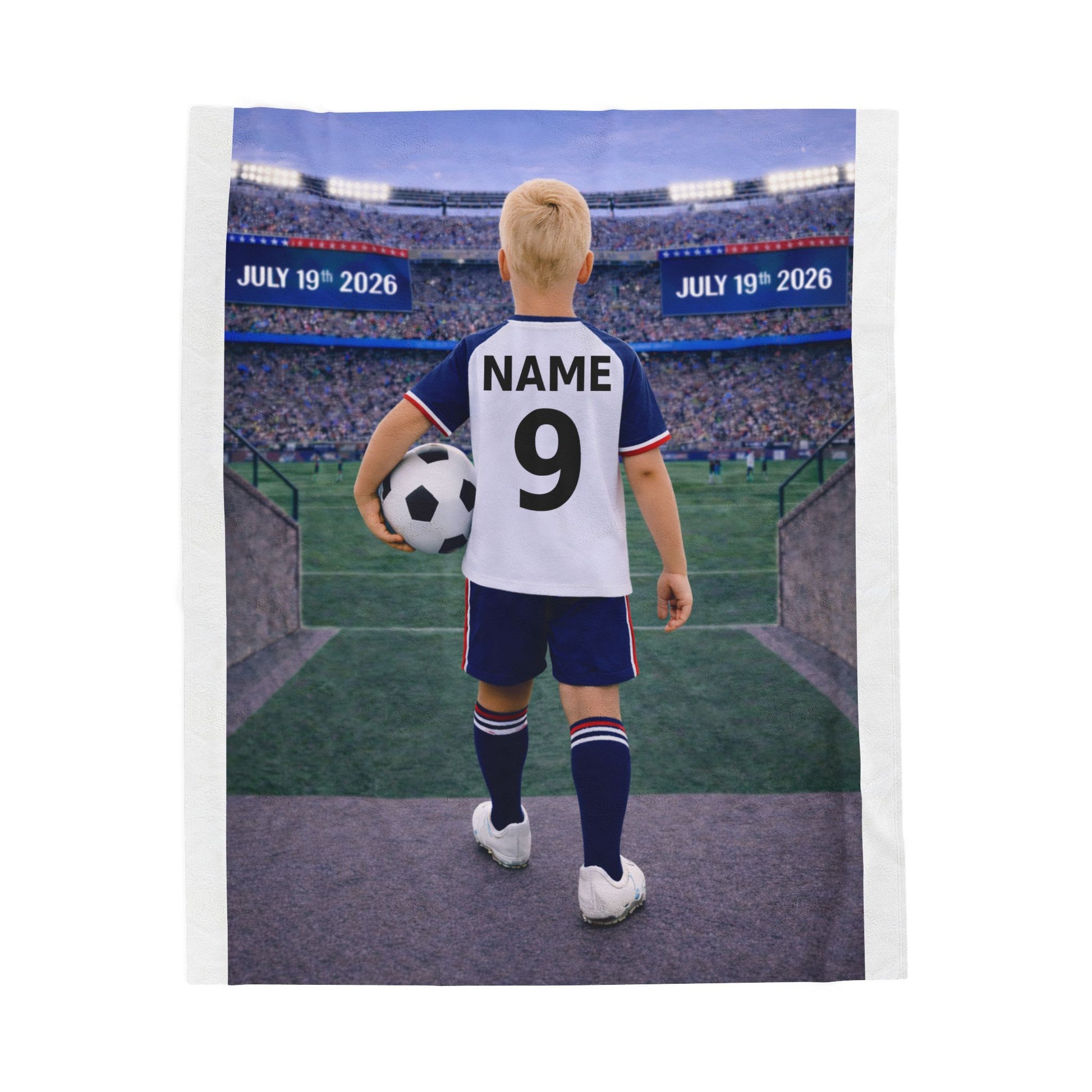 Create a one-of-a-kind soccer-themed blanket personalized with a custom name and number in a bold, athletic shirt-back layout. Perfect as a sports gift.